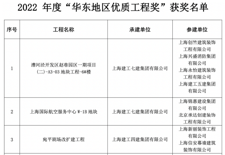 附件:2022 年度“华东地区优质工程奖”获奖名单